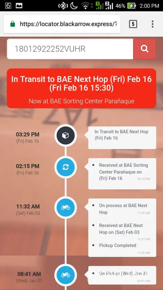 I ordered last january. Successful pick un on january 31. I have 3 order and was picked up on the same date. Ngayon, feb 19 na. Still in transit to parañaque sorting center? Gaano po ba kalayo ang parañaque from the seller's house?! Still in transit pa eh! Tapos nag mag ako, at first nag reply sila. Tapos sunod, di na nagrereply. Seen pa! Ngayon I posted on my wall. Baka naman iboblock pa ako nun? I ordered 8sets of gtec, 5pcs aloe vera gel and a threader. P4000 sobra na ung nabayaran ko. Hindi ko naman makuhakuha ung refund kase dinidispute ng seller. They have the right naman pero kasalanan lahat ng blackarrow! May legal actions po ba dito?