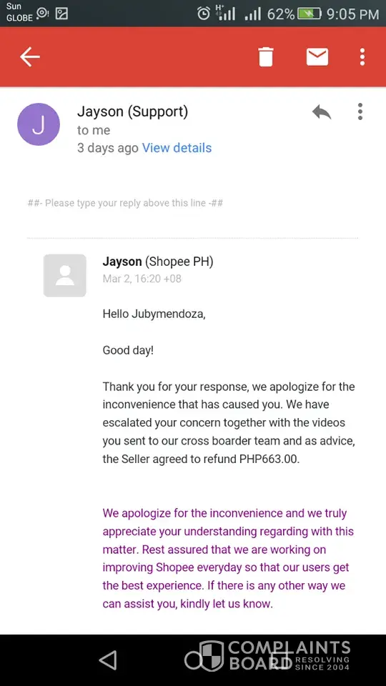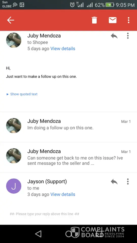January 4, 2018 i ordered a single electric stove. It arrived 2 weeks after. It was supposed to be a gift for a cousins wedding. I noticed the packaging was not that good. Could be because of the courier. The box wasnt in good form. I then wrapped the item with a gift wrapper so we can give it as a wedding gift. Apparently for some odd reasons we are not able to attend the wedding. After few days i decided to just use the item since we cannot send anymore to the newly wed. Btw, when i packed the box i still have the bubble pack. Didnt remove it. As i open the box i smell something like a burned wire. The item was new but it wasnt screwed and its not assembled. I then pm'ed the seller about the situation and even sent her pictures. She then agreed to replace the item. But until now she hasnt. I emailed the shopee support team and they kept on apologizing and every 2 days they reply back to thr email i sent them and they will always just say wait for another 24-48 hours since they are now in contact with the seller, buy the seller hasnt replied even if i can see her online both on shopee and fb.