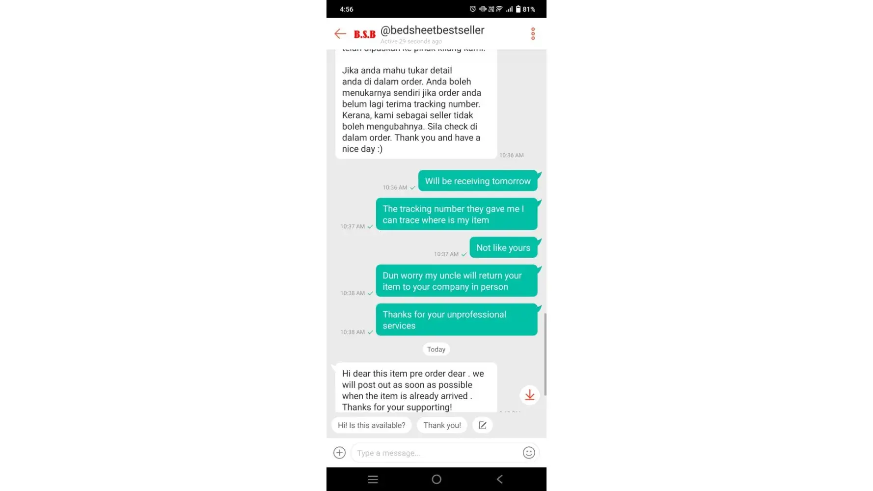 Unacceptable behaviour from seller/user.