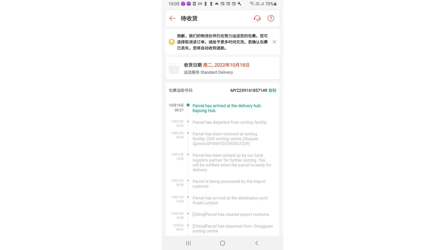 My Parcel MY2239141857149 hold on Shopee Express hup (Kepong) for 14 days (Shopee xpress tracking no:SPXMY025393837029)