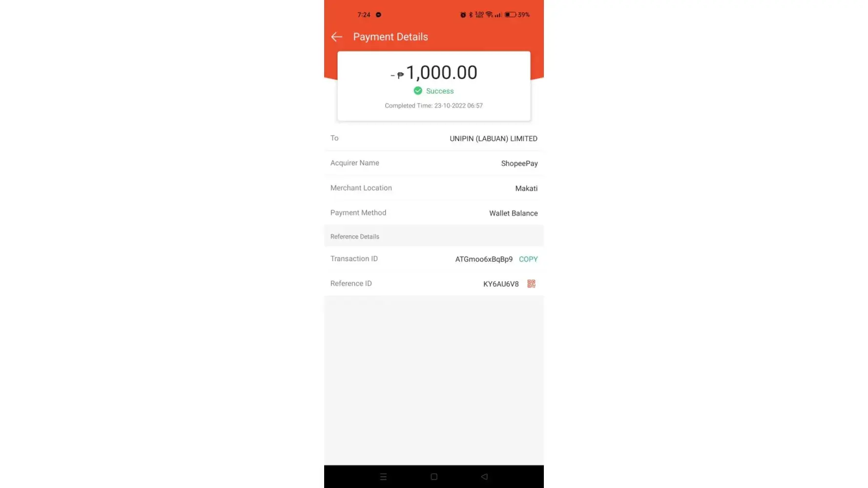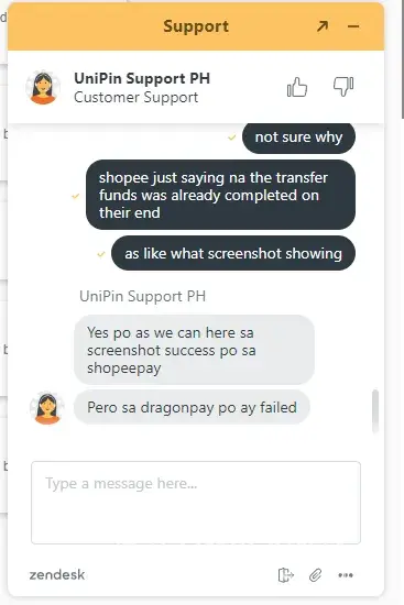 I top up 1000 Php to Unipay using my Shopee pay balance. Last October 23, 2022. I already contacted all the related merchant and company with my top up and yet this transaction is not yet refunded or applied to my account. I reach out to be specific Dragon Pay and UniPin and they all saying the same thing to contact the other partner. Shopee to contact Unipin to contact Dragon Pay to contact Shopee. Now my money is on hold and cannot use my funds.