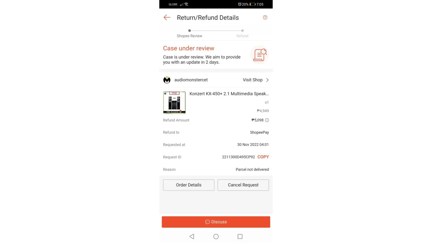 I ordered last November 21 and the delivery date will be on 23rd of November. I thought when you place an order and paid it, it will be prioritized. But unfortunately, since November 22, my parcel was stuck in the delivery hub. I file a refund but until now, November 30. No response from them. Please help me