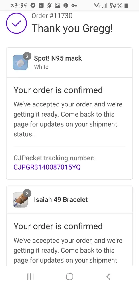 Hi, we're getting your order ready to be shipped. We will notify you when it has been sent