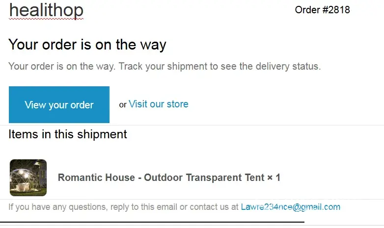 order #2818; healithop on shopify.com lawre234nce@gmail.com