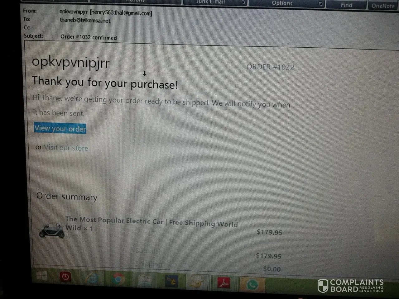 I saw an advertisement on Facebook which directed my to a shopify company named opkvpvnipjrr. I activated my account and proceeded to purchase an electric Scooter 2 seat vehicle. I received my confirmation of order number #1032 on the 29th of September 2019. Since then I have received no shipping information despite several emails to henry5631hal@gmail.com (email provided for queries. In addition to this when I click on the link 'view your order' or Visit our store it says "Oops, something went wrong" and "This shop is unavailable".