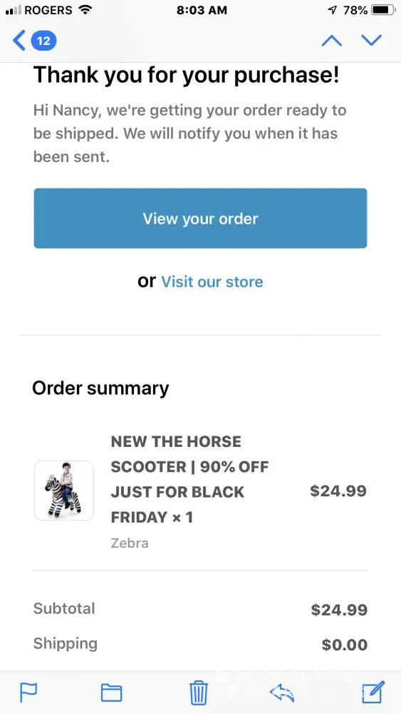 I order a zebra scooter and got a email saying that as soon as my Order is shipped they will let me know . But the company has been shut down . Please let me know if I'm going to get this product or is it a scam or I want my money refunded