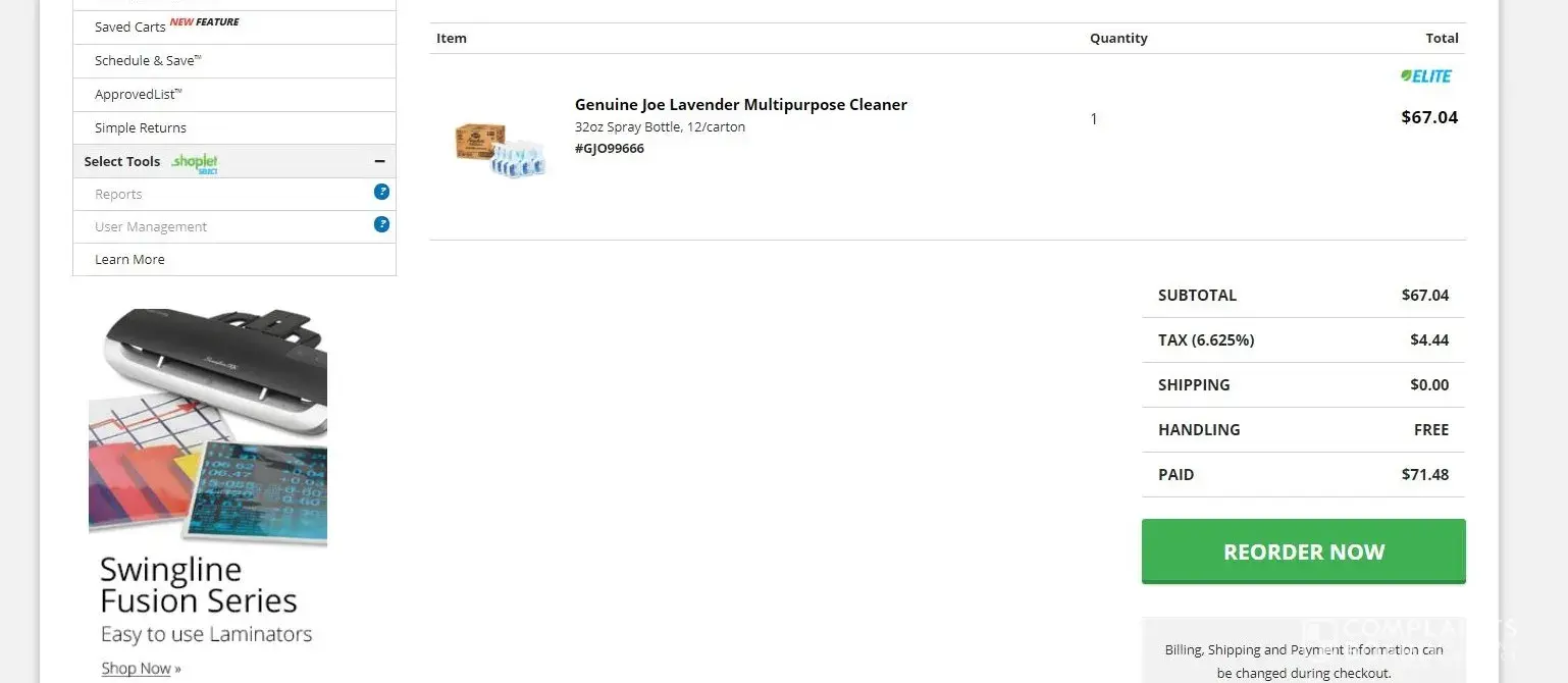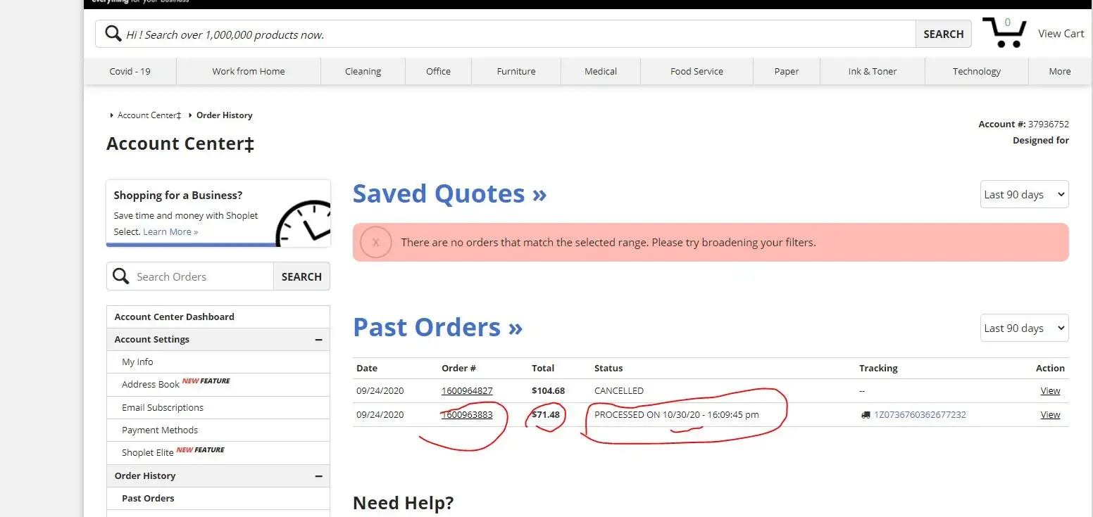 Order a few items from shoplet for my business. I orders clorox anywhere a case of 12 - they did a partial charge of my order as some items were on back order. Delivery came with 1 bottle of some product I never ordered, and charged me $71.48. Immediately sent the video to them at their request on sept 25th 2020 still no refund beware as this company