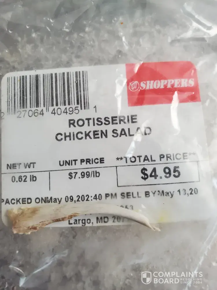 I purchased a chicken salad from the largo, maryland location. I was eating the chicken and had an object stuck in my gum when I was chewing. It appeared to be part of an animal. I called customer service and due to covid, I realized it would take some time getting back with me. I called back a month later only to be informed my case was closed. I am glad...