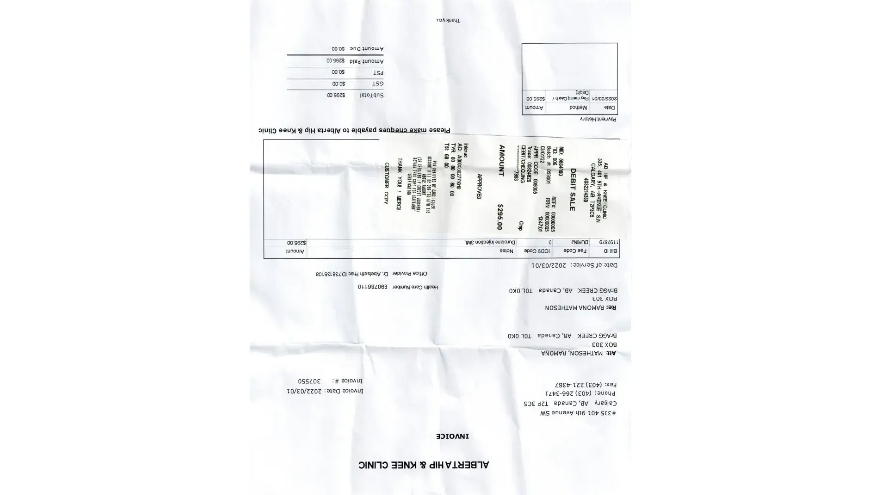 Alberta Hip And Knee Clinic charged $295 on mar 1 2022.