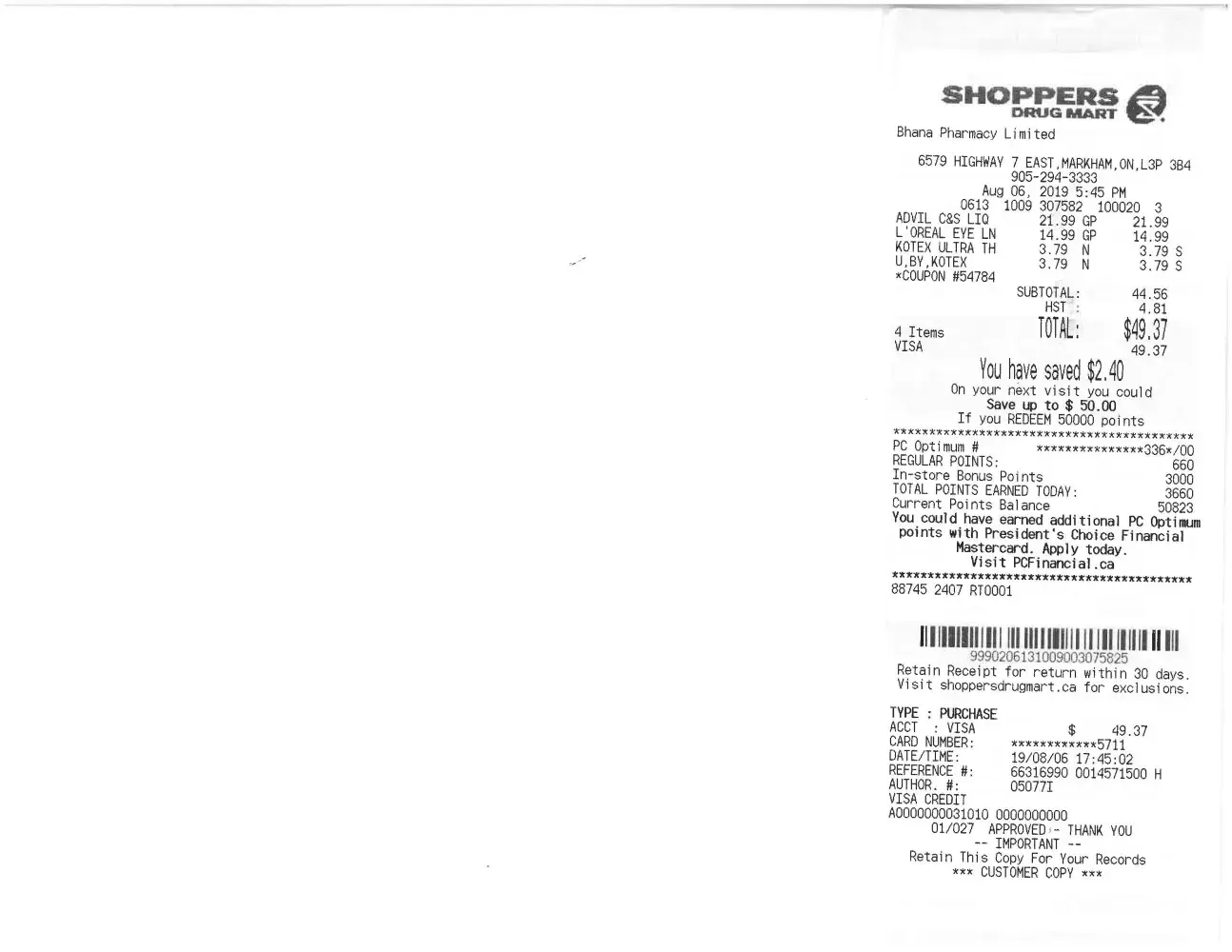 Shoppers Drug Mart promotion points not accurate