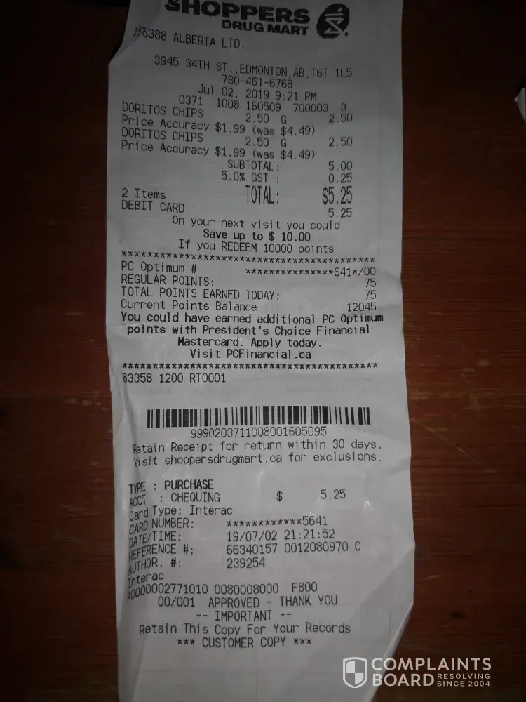I bought two bags of Doritos as the sticker on the shelf clearly said they were 2 for 5 dollars. I did not realise it till i got back to the car that I was charged full price for the Doritos. I went back into the store to show them there mistake. The manager came over and refunded the original price and then rang them through the till at the sale price of 2 for 5 dollars. I asked if they followed the Scanning code of practice and the manger said yes. I said well then should i not get these bags of chips for free. She said it is not part of the SCOP as it was an expired sale that was still tagged on the shelf, I explained to the manager that would be exactly what would be covered under the SCOP, she continued to tell me No I was wrong. there was a huge line of people forming behind me and I did not have the time to argue with the manager over who was right and who was wrong. So i paid for the chips and kept all the receipts I have attached photos of all receipts, as well as a photo of the tag on the shelf and a photo of the SCOP that clearly says it is covered under it.