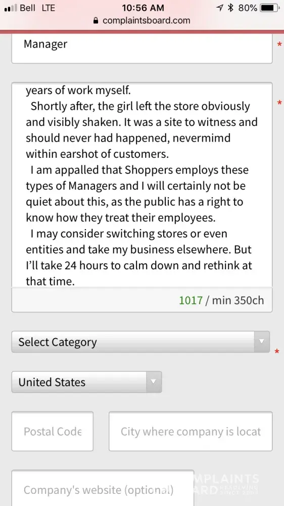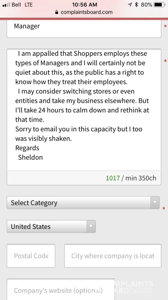 I am appalled that Shoppers Drug Mart employs these types of Managers, and I will not be quiet about this as the public has a right to know how they treat their employees.
