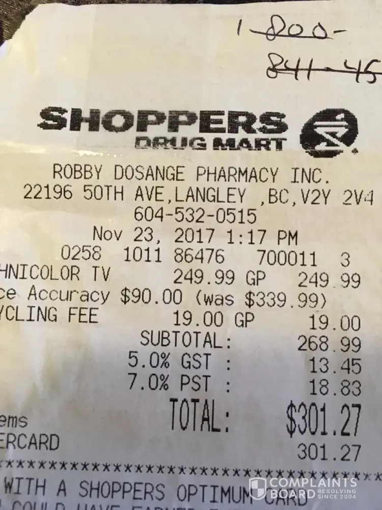 The TV was damaged when we took it out of the box. Shoppers will NOT deal with it and told us to deal with Curtis International for warranty. Curtis will not replace it nor even tell us where to return it. We are out $301.27 and our disabled son does not have his TV. Does your Complaints Board even respond to/acknowledge complaints? This is the second time I have complained about this situation. Please advise/respond to [protected].