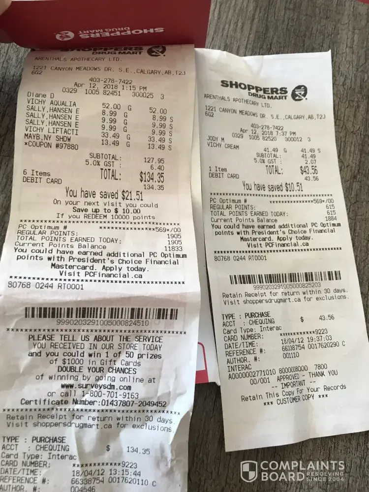 I've shopping at Canyon Meadows shoppers drug mart April 12 at1:15.