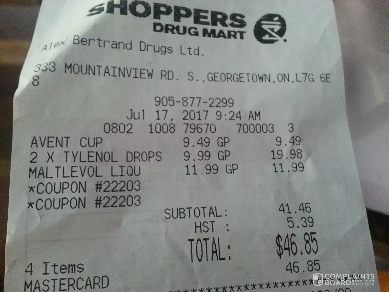 At this time, I went to the front and was upset but kept my calm. There were two young Shopper's workers there standing at the front. I know I could have left but I was tired and this was my last stop, I placed my items on the counter and went to go get one item and then paid for my items.