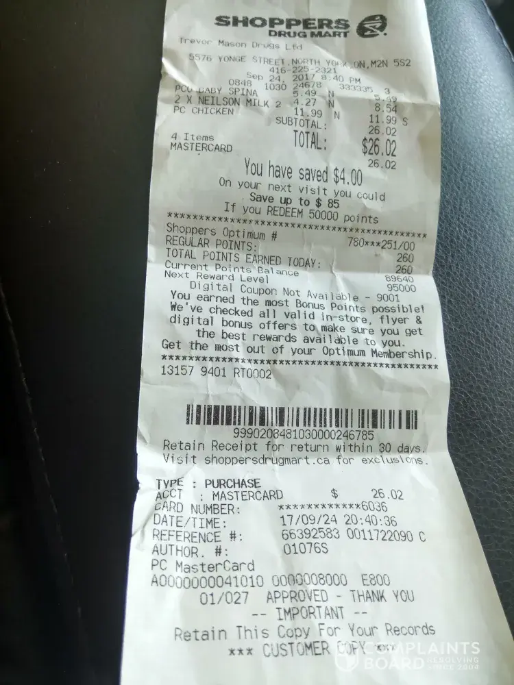 This experience has left me with no choice but to move our family prescriptions to another drug store and totally stop shopping for all other goods at any Shoppers Stores. family