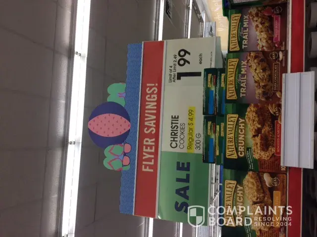 August 4/2017. The SALE price tag on a shelf was right above the granola bars. Got to the check out and turned out that the price tag was for a different product on a bottom shelf. It's so misleading and deceiving. In addition, its very upsetting. When i approached the staff, I was told that it was not confusing at all and that the manager decides what to put on a shelf under the price tags!