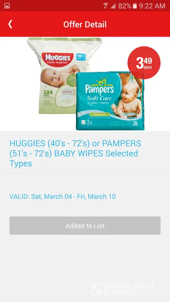 The week of March 4 - March 10, 2017 flyer was advertising that huggies Natural Care baby wipes 184 pack was on sale for $3.49 each, according to the ad picture, no other description. When I arrived at the store, that product was not marked down to the advertised price, when I asked the cashier about it, they looked at the flyer and were confused when the price wasn't the same, they called the supervisor over, when the supervisor was finished his investigation, he didn't have an explanation for me, he only said the ad picture is wrong. That was a disappointing explanation, no offer to honor the flyer price.
