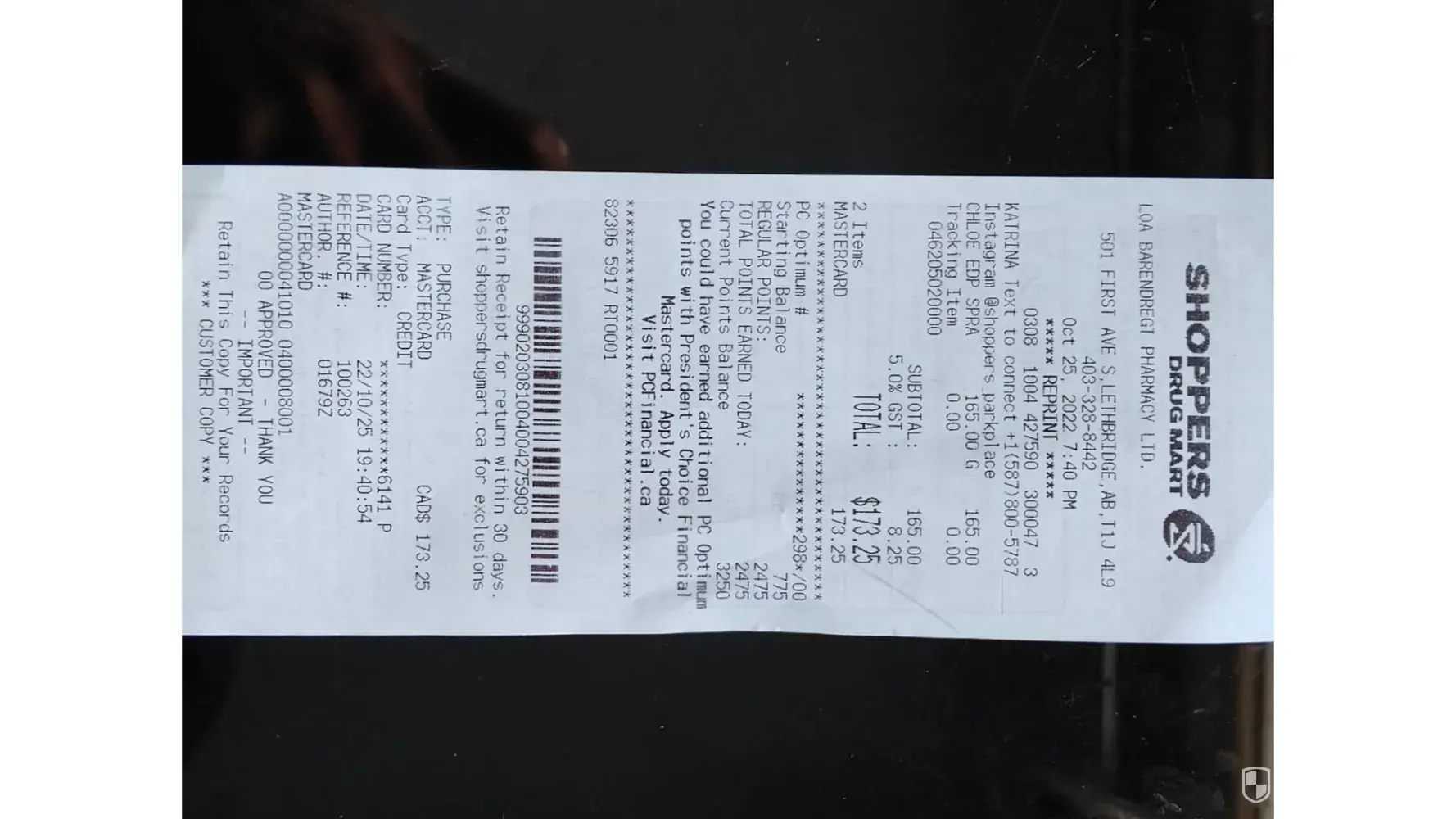 I had a Cloe Eau De Parfum (50 mL) (with ID #10, 75002) for which I have been using and have been pretty satisfied with its lasting fragrance (sometimes even lasting 2-3 days). When this 50 mL bottle was about 2/3 used up, I went to Shoppers Drug Mart (at the Chinook Mall) on the 25th October 2022 to buy the same fragrance. In fact, I took the unfinished bottle with me to ensure I didn’t miss out on the same parfum (see attachment). I was given the match which was only available in a 75 mL package (with ID # 1139) for which I paid $173.25 (more than I had budgeted) with Receipt Ref. 100263, Transaction # A00000000410100400008001).
