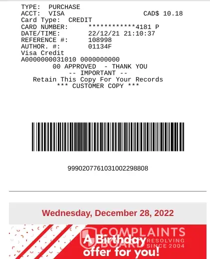 Desired outcome: Also they signed on the receipt justifying themselves that it was a seasonal product