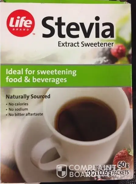 I purchased the Life Brand Stevia sweetener and have to say that the individual packages are the worse design ever. They are very difficult to open and many of the singles were empty due to poor manufacturing.
