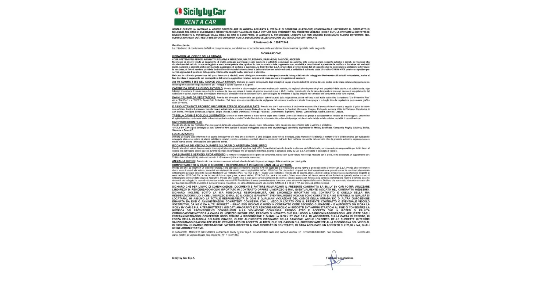 I rented a car (GE333XE) Fiat 500 from the company on 10/02/2023. When I signed the contract I did not see the terms and conditions and pricelist for the damage, I signed the contract on their tablet where the terms and conditions were not shown and only after signing they were sent to my email along with the price list for the repair/damage. The signature on rental agreement is mine, on the conditions is not mine.