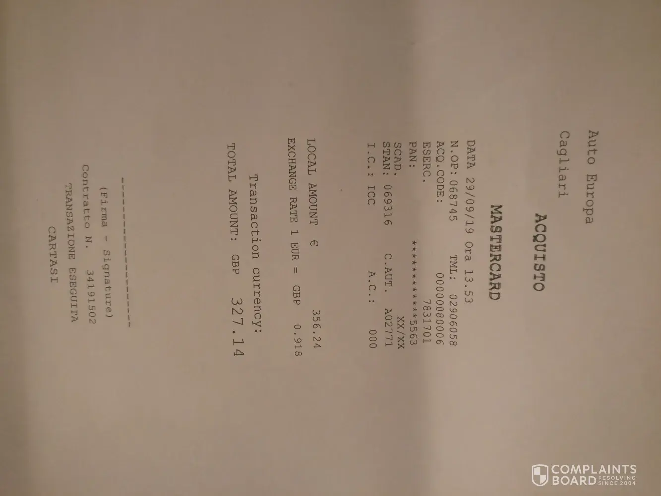 We have rent a car from Sicily by car company at the 7th of October 2019. We pick up the car from airport Malpensa and we delivered it at the Rome airport. We had been informed that the charge would be extra € 61. we paid with our card and the extra insurance that we have chosen and the amount of the 61 euro. On 24/12/2019 there was another charge from...