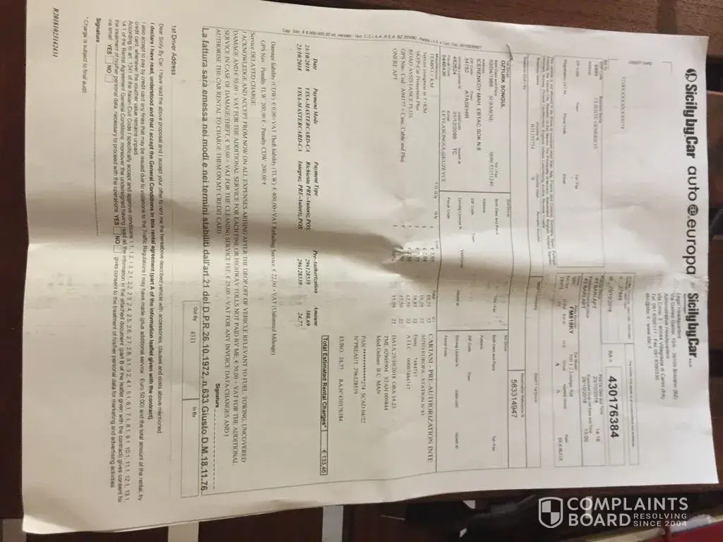 This is to report an issue concerning the car rental from Sicily by car during our stay in Rome.