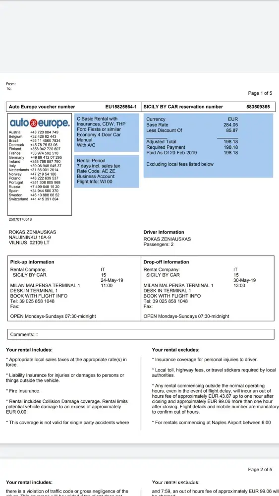 Thank you for your reply. The contract number is [protected], the car was a Fiat 500 with license plate FW008VE, the driver’s name is Borut Strlic