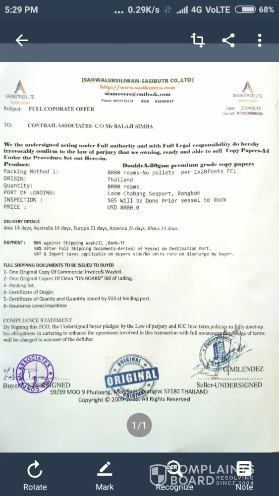 I even intend to write to The Chamber of Commerce Indian Embassy Thailand to check these fraudulent activity practiced by such delinquent firms.