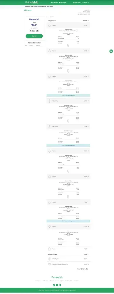 My apartment makes you use simplebills. There is zero transparency with your bill, they literally charge you what they want. There is no schedule, they post bills as they please. Their support team is no existent and their website doesn't work and is very sketchy. It's a scam that my apartment company fell for. They charge us $11 a month to use a service that I have no say in choosing. Those "fees" are all fake terms like "card holding fee." It costs no money to hold my card info. They suck. Point blank.