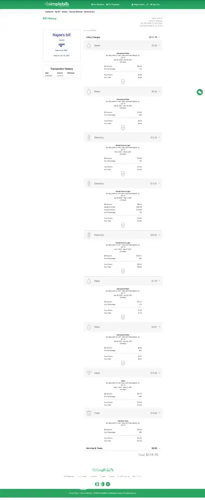 Like others on here I was forced into taking on simple bills by Conrex rental company when I renewed my lease. Not only did I have to pay a $25 charge to set up an account with simple bills I also have to pay $10.95 every month to use simple bills (again had no choice in using simple bills or not per the new lease). The new lease stated 8/1/2021 and I did not receive my first bill from simple bills till 10/21/21 and it was due 10/30/2021...9 days to pay. Then I received nothing in November to pay. On 12/1/2021 I receive a massive bill for $500+ due 12/9/2021 labeled November. My husband called simple bills to inquire we didn't get a bill in November and why we have only 9 days notice to pay again? There answer was that's the way it is and are you going to make a payment now. Here we are 12/22/2021 and I receive another bill for $200+ due 12/31/2021 for December. You better bet that I am contacting the BBB and Attorney General along with a consult with my lawyer.