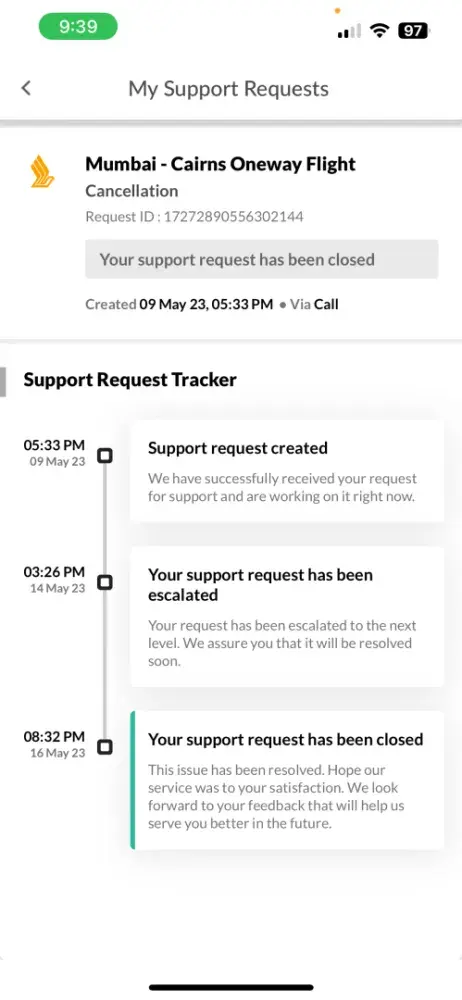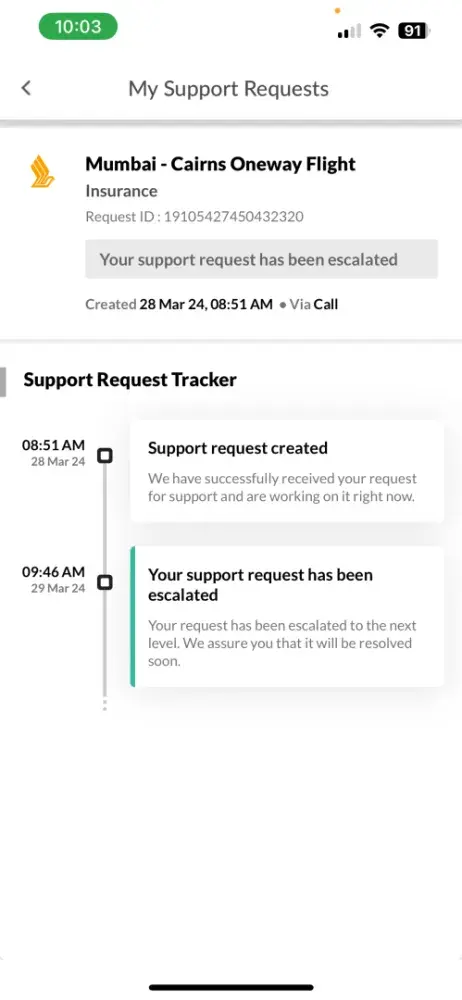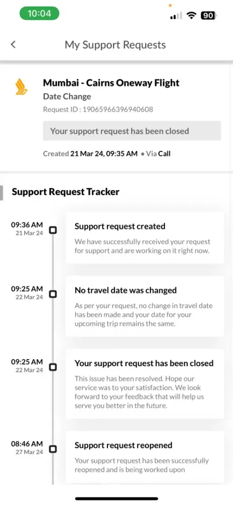 In my attempts to rectify the situation, I also tried to contact Singapore Airlines directly, as they were the operating carrier for the flight in question. Despite having the PNR, I encountered difficulty in reaching their customer service, and my efforts to resolve the matter directly with the airline were unsuccessful.