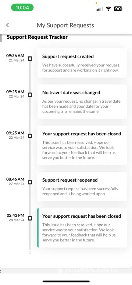While MMT verbally confirmed that the ticket was kept open and could be utilized later, there was no written confirmation until I followed up. The confirmation received indicated that the tickets were kept open until March 28th, 2024. However, it did not specify that the travel date also needed to be before March 28th, 2024.