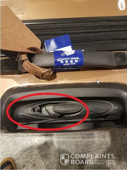 Had reported to the Airport claim counter immediately, the staff just use a walkie talkie to speak to another "person" and told the person the luggage is working fine even it had a cracked handle.