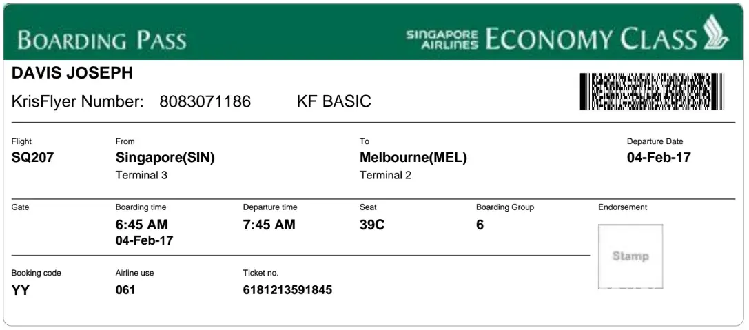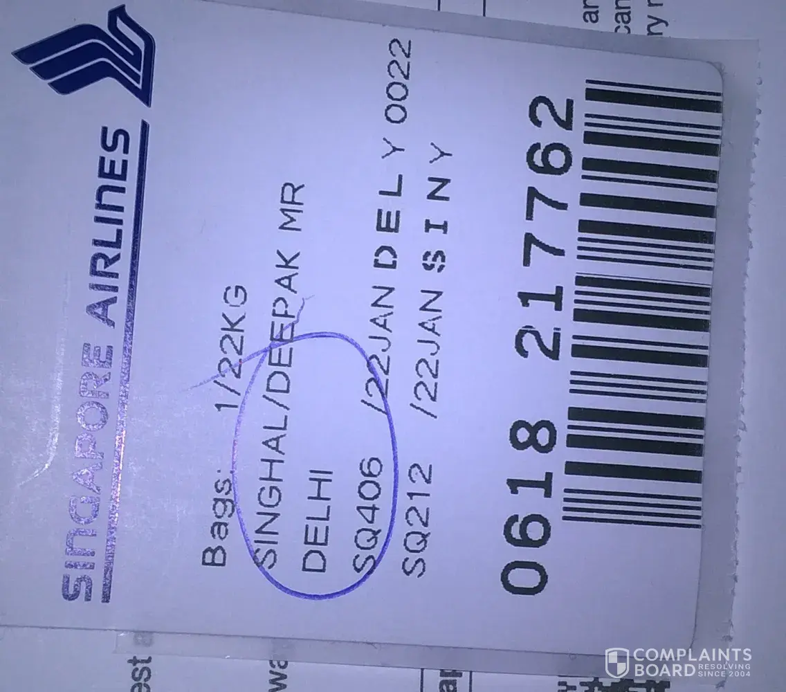 I travelled Sydney - Delhi on 22.01.0217 from SQ 212 & SQ 406 via Singapore.