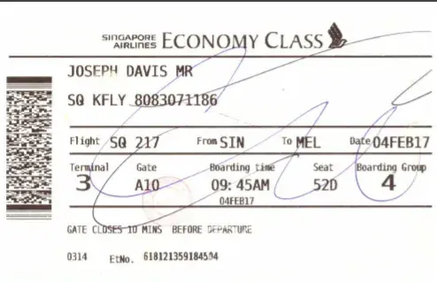 Davis joseph (Krisflyer membership number : [protected])