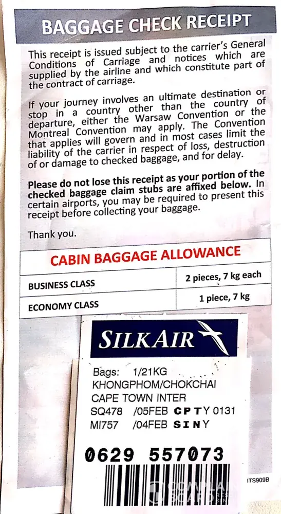 I been travel with Silk airline and Singapore airline from 04 February 2017 from Phuket to Cape Town. My flight is MI757 seat 30A and transit to SQ478 seat 47D. I has been plan this trip for 6 months before flight because this will be a wonderful wedding in Cape Town for my friend. I plan to travel for mountain and big 5 safari. I plan my journey with nice dress and comfortable for each trip. My food from Thailand for myself and my friend during my stay there. I was surprise on this situation happened with the best airline in the world. I never though this situation will be happened with this airline. Staff of Singapore airline (Ms.Charmaine) was given me ZAR 500 (approximately 38 US dollar) to buy something necessary. She just talk to the staff at lost and found counter (Mr.Vincent) at Cape Town airport and speak "just give him ZAR 500 enough". They promise that my luggage will be arrive 2 days later. There are nobody from airline even call me to notice after 2 days that my luggage still lost. I go to Cape Town airport after 2 days and got notice from lost&found counter. I try to contact my friend who work for airline in Phuket to check for my luggage from Singapore. After 2 hours my friend notice that my luggage still in Singapore. I don't know what the staff in Cape Town working on their duty. After 4 days I got my luggage in Cape Town. That mean I have only 1 day left there. Staff of Sigapore airline don't ask me for any help. Singapore airline has been ruin my vacation for this year. More over, while I travel back from Cape Town to Phuket, I been disappointed with dalay for 5 hour trip at Johannesburg. I have to stay over with no meal on the plane. After I arrive in Singapore, they rearrange my flight to MI756 in the evening with luggage problem again.