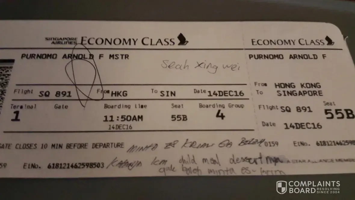 Later i lodged complaints to duty supervisor Mumtaja, till today i havent receive any feedback from SQ.