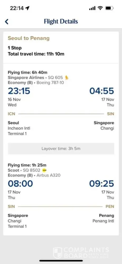 So, overall I am very disappointed with the Customer Service of Singapore Airlines regarding booking 5KBQ6E. I do not see Singapore Airlines caring about its customers.