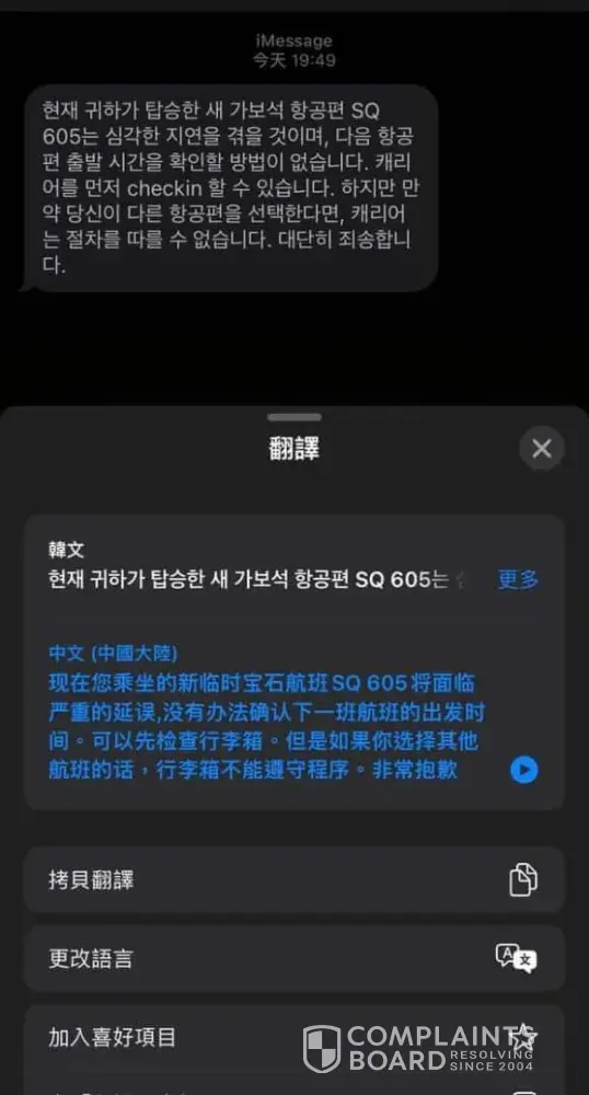 Can someone help to check why payment was credit but Korea there not allowed to check in due to no record found? Now my daughter stuck at Incheon Korea airport now. At the same time my daughter also got received msg noticed that the SQ605 flight delayed ? Can get someone help to check on this issue?
