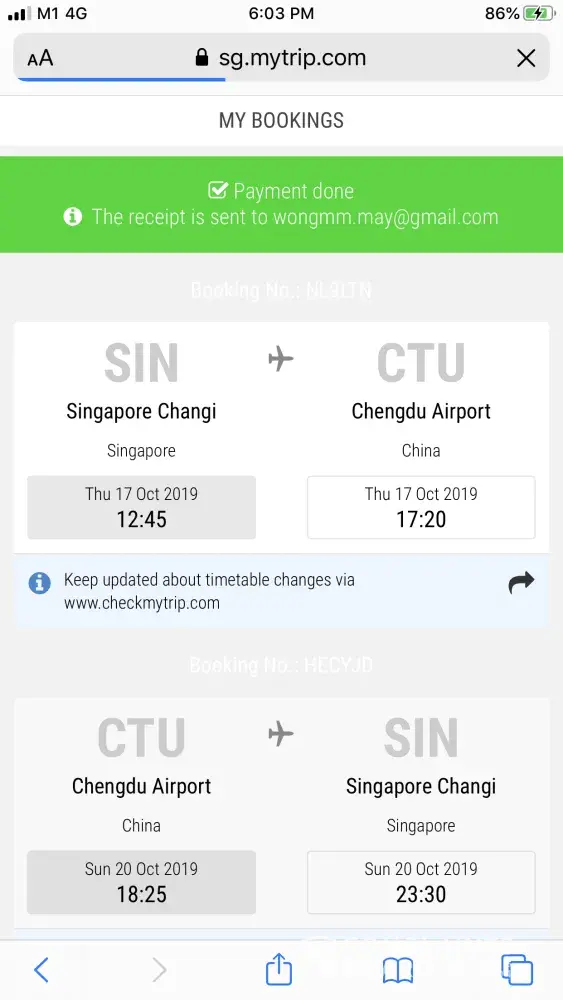 I flew back from Incheon Airport via SQ611 on 22 Sept, 11.20am flight, with my 1 year old baby and husband.