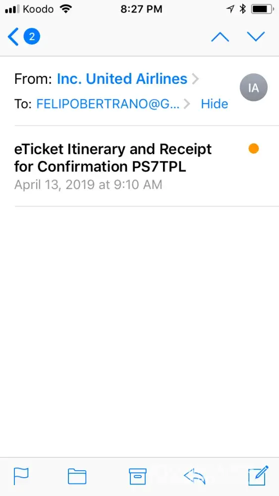 - Print screen of my cellphone, with the proof I still have my flight receipt on it
