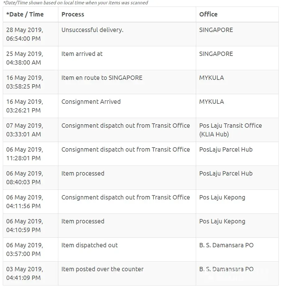 Singapore Post (SingPost) has left an official reply on this complaint.