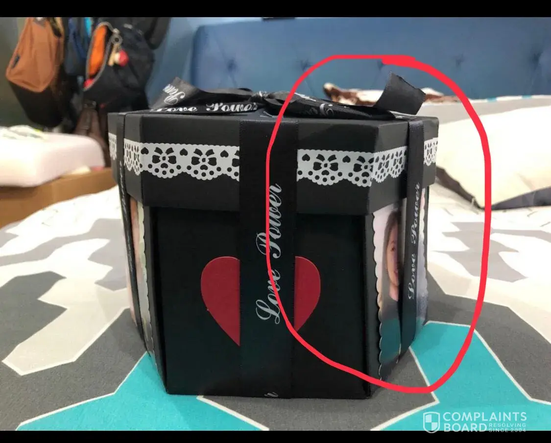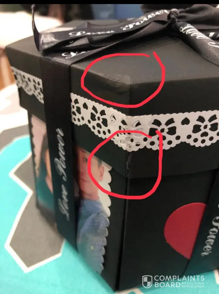 The package was damaged when I came to collect it from Singpost on 14 June 19. The item itself was found damaged when I opened the package. The item is an album box and it looks like it has been crushed by something heavy as the album box was slanted (kindly refer to the photo attached).