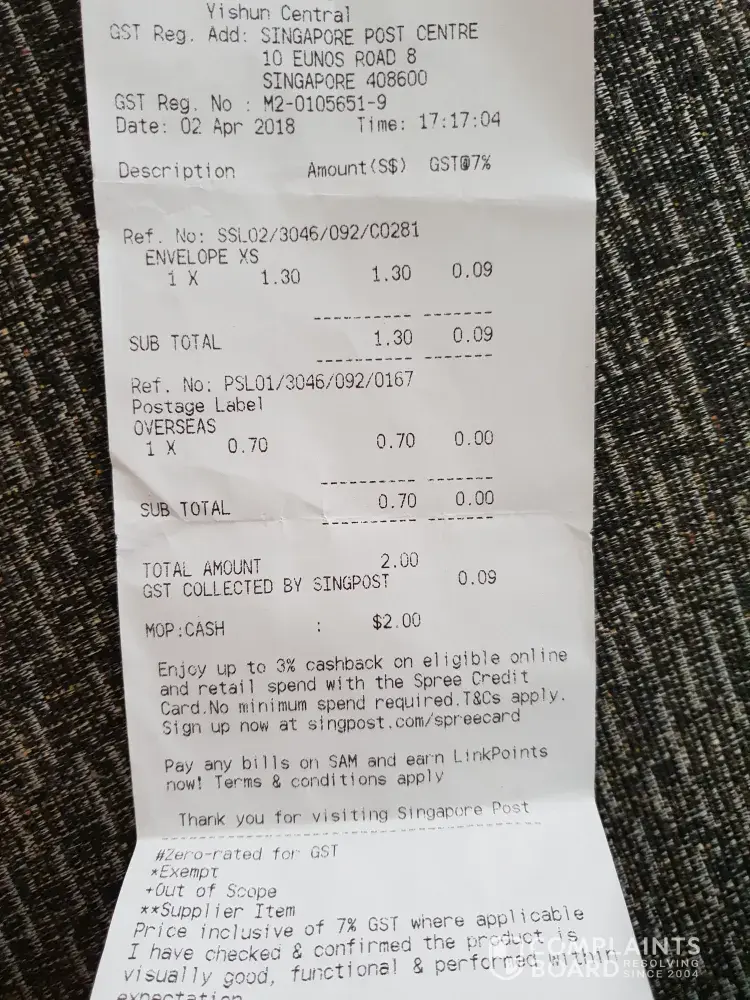 Look forward to hearing back from Singpost regarding further information on this issue so that we may understand the position. Thank you.