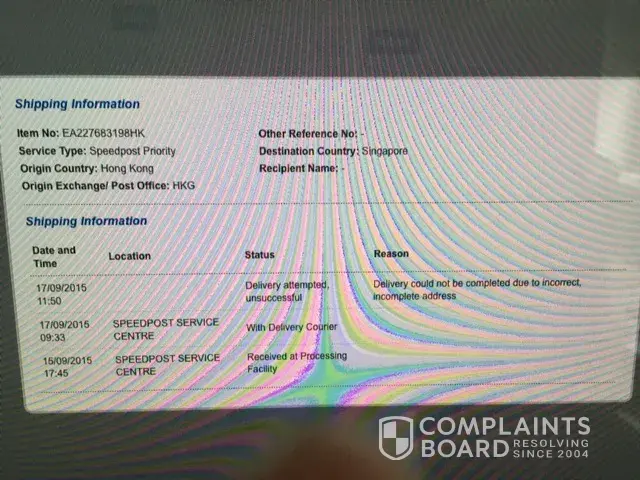 If I do not hear from Speedpost within 48hours, I will seek help from the Police for this forgery matter.