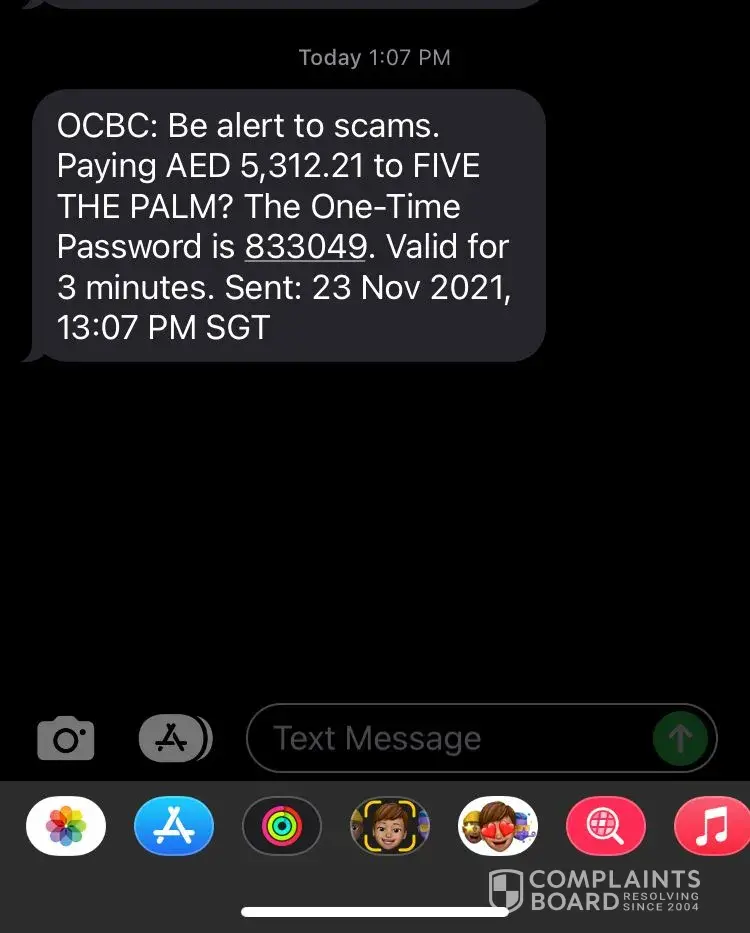 I am shocked the OTP message i received is paying AED5, 312 to this UAE compant FIVE THE PALM! of coz i never proceed and this is so dangerous, furthermore we do not know if we really have items send by singpost as online shopping so common nowadays