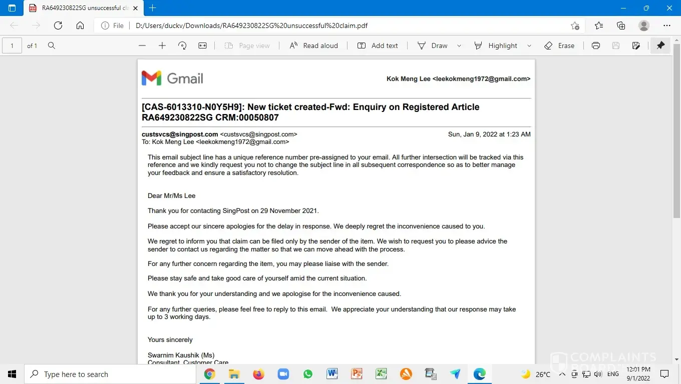 Singapore Post (SingPost) Claim process for lost parcel - pingpong between different departments
