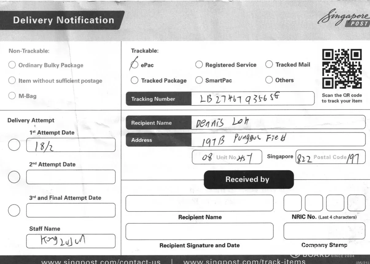 Yet another example of how SingPost works.